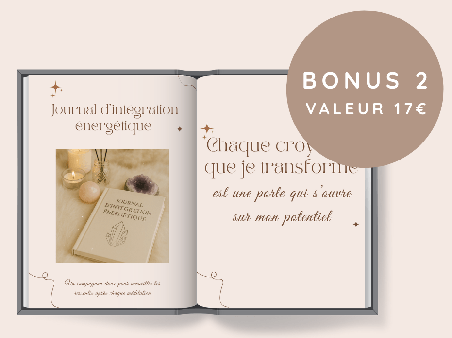 🎁 Bonus 2 : Journal d’Intégration Énergétique — pour suivre tes ressentis et tes évolutions jour après jour.