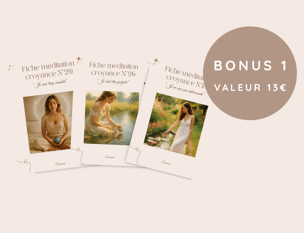 🎁 Bonus 1 : Fiches Cristallines de Transformation — pour approfondir chaque méditation et ancrer tes changements.